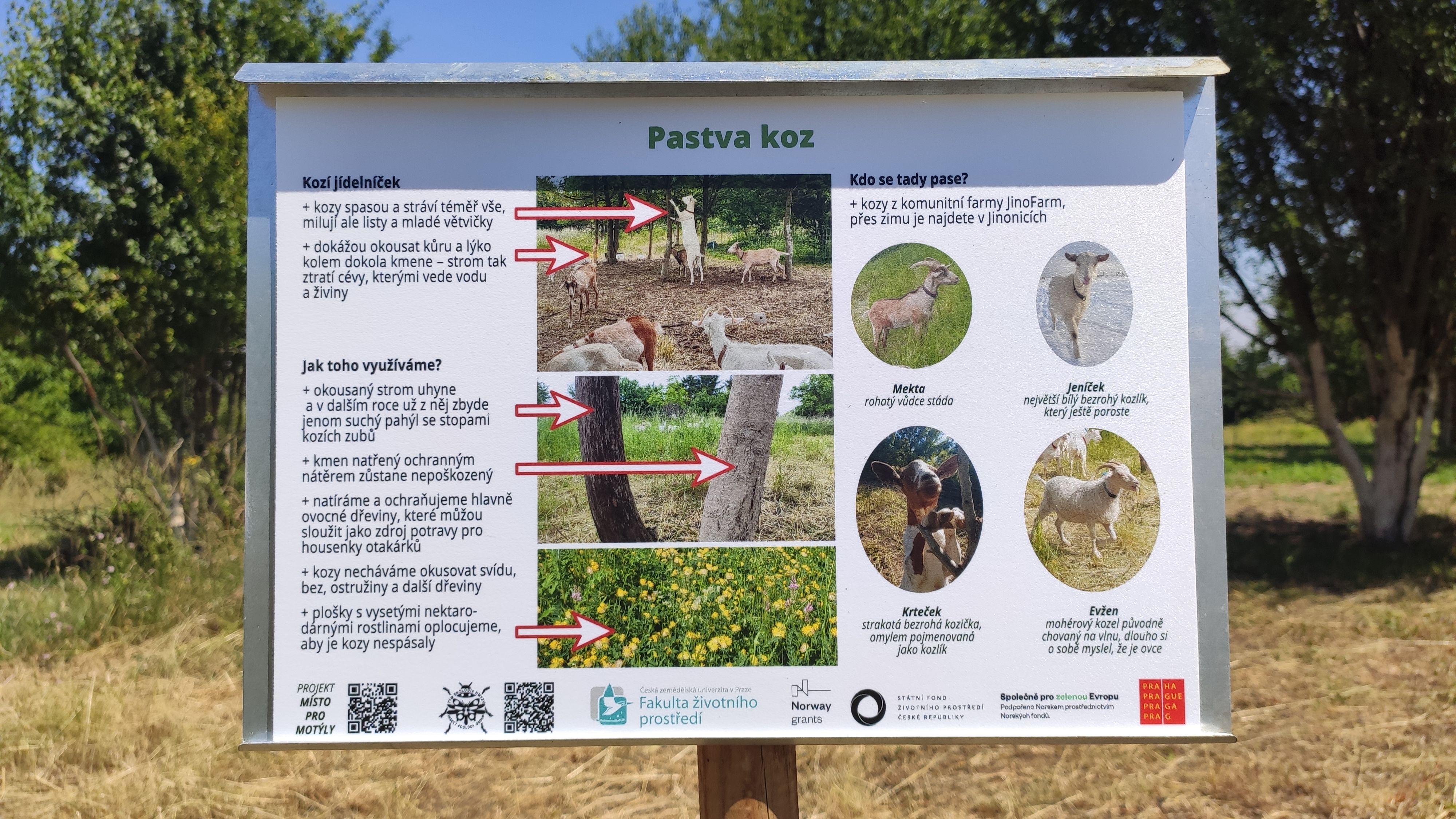 Entomologové z Fakulty životního prostředí ČZU v Praze minulý měsíc úspěšně dokončili projekt komplikovaně pojmenovaný „Cílená podpora ohrožených druhů motýlů založená na kombinaci flexibilního managementu biotopů a vyhodnocování detailních biologických dat“ (zkráceně „Místo pro motýly“). V rámci projektu se podařilo vytvořit nové lokality a pečovat o již existující lokality pro cílové druhy denních motýlů v blízkém okolí Prokopského údolí. Přírodní rezervace Prokopské údolí se vyznačuje velmi vysokým druhovým bohatstvím hmyzu, a proto nové lokality mohly být mnoha druhy motýlů snadno nalezeny a rychle využity, což potvrzují i biologická data z monitoringu denních motýlů. Celý projekt by nebylo možné realizovat bez pomoci koz z komunitní farmy JinoFarm a dobrovolnických akcí spoluorganizovaných Ekocentrem Podhoubí.