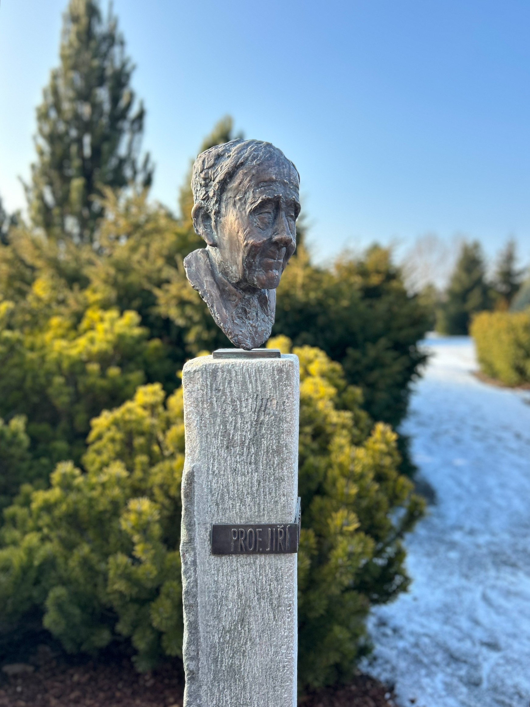 Busta krajinářského architekta profesora Jiřího Marečka vévodí Libosadu, který vznikl podle jeho návrhu