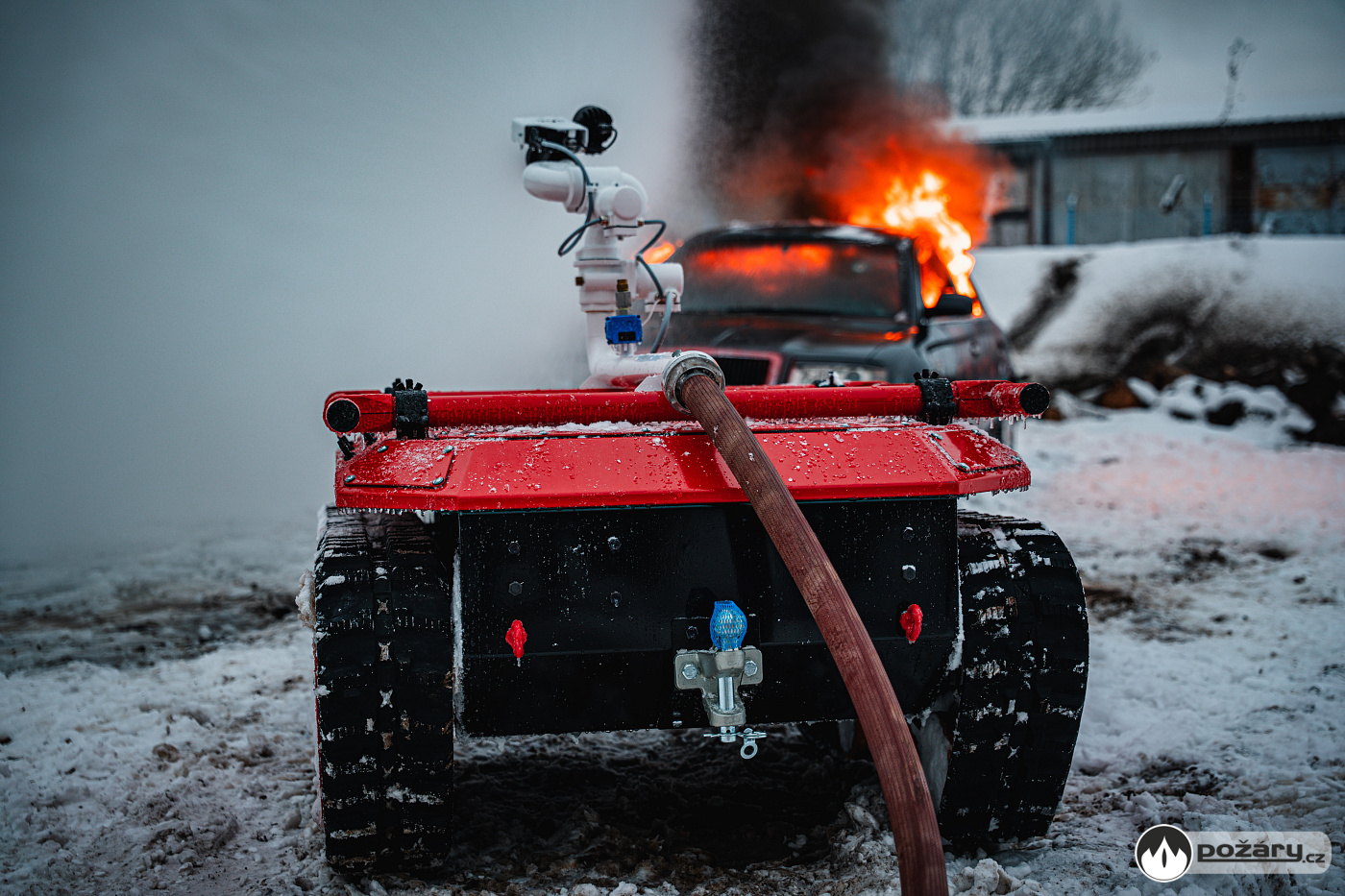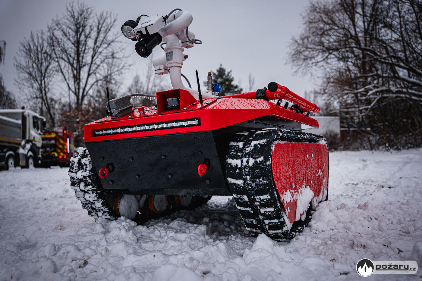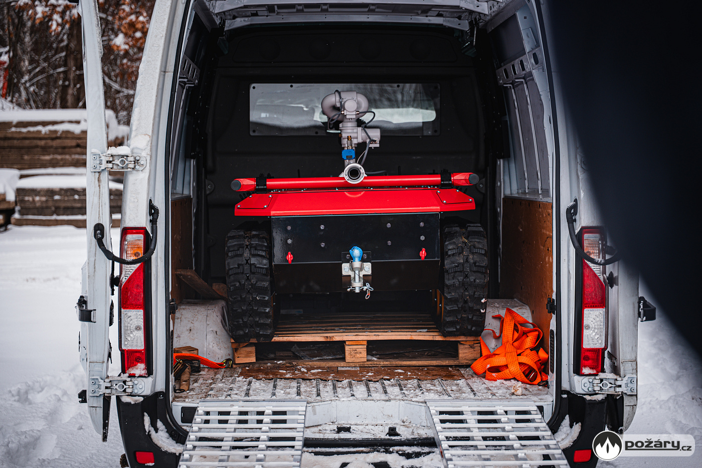 Modularita: Na univerzální podvozek lze osadit hasicí lafetu, zásobovací modul, záchranářská nosítka či monitoring s termokamerou.