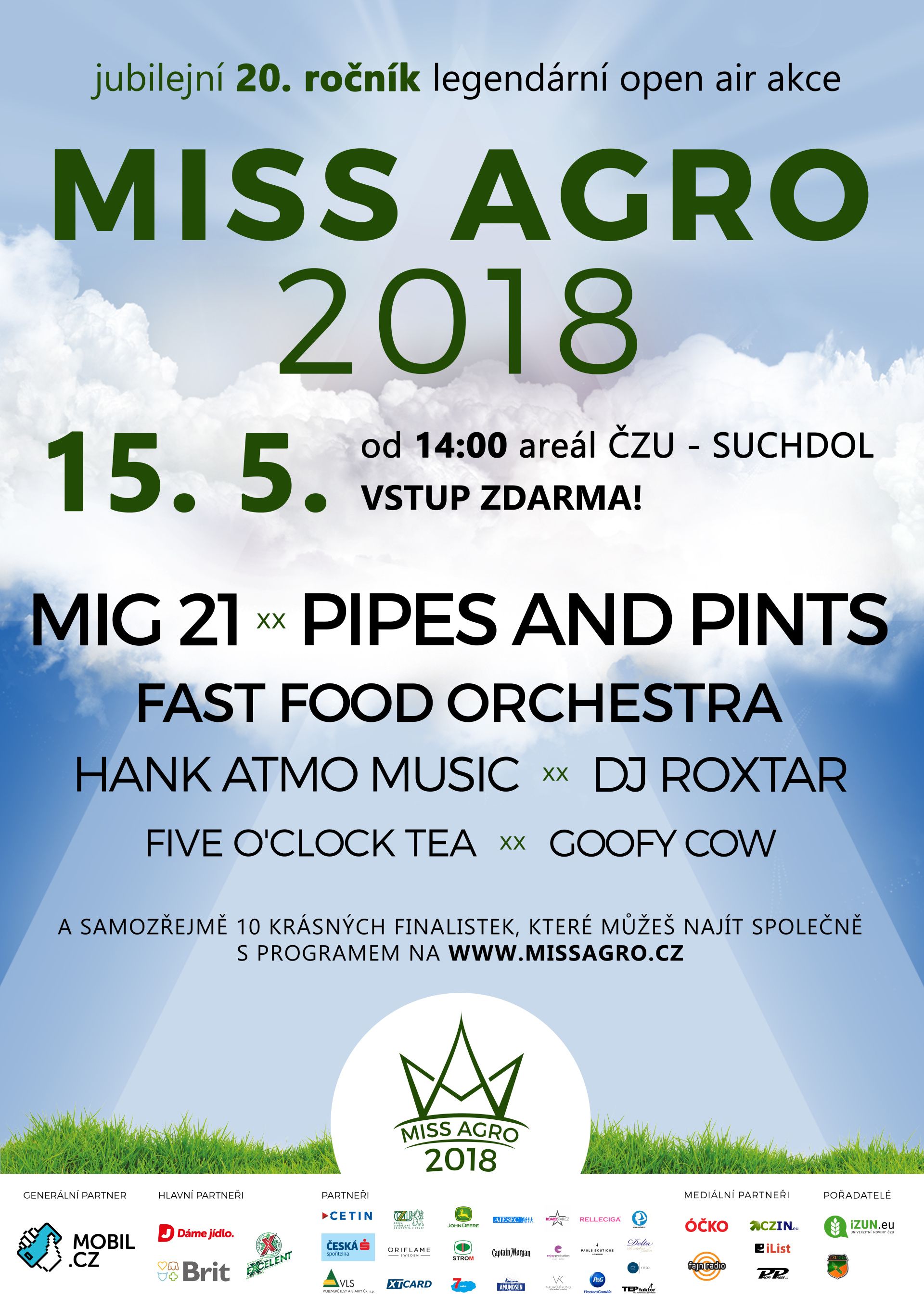 Úterý odpoledne bylo ve znamení tradiční open air akce Miss Agro. Soutěž odstartovala ve 14 hodin, a to vystoupením olomoucké rockové kapely Goofy Cow. První část soutěže krásy poté propukla v 16 hodin. Nejkrásnější dívkou ČZU se stala Tereza Pánková, I. Vicemiss Linda Krahulcová, II. Vicemiss Petra Tošovská, Miss iZUN Adéla Kuníková a Miss Mobil.cz Tereza Zuzánková.