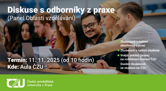 V úterý 11. listopadu od 10 h se v Aule ČZU uskuteční otevřená diskuze Panel Oblasti vzdělávání – dialog, který posouvá hranice univerzitního vzdělávání.