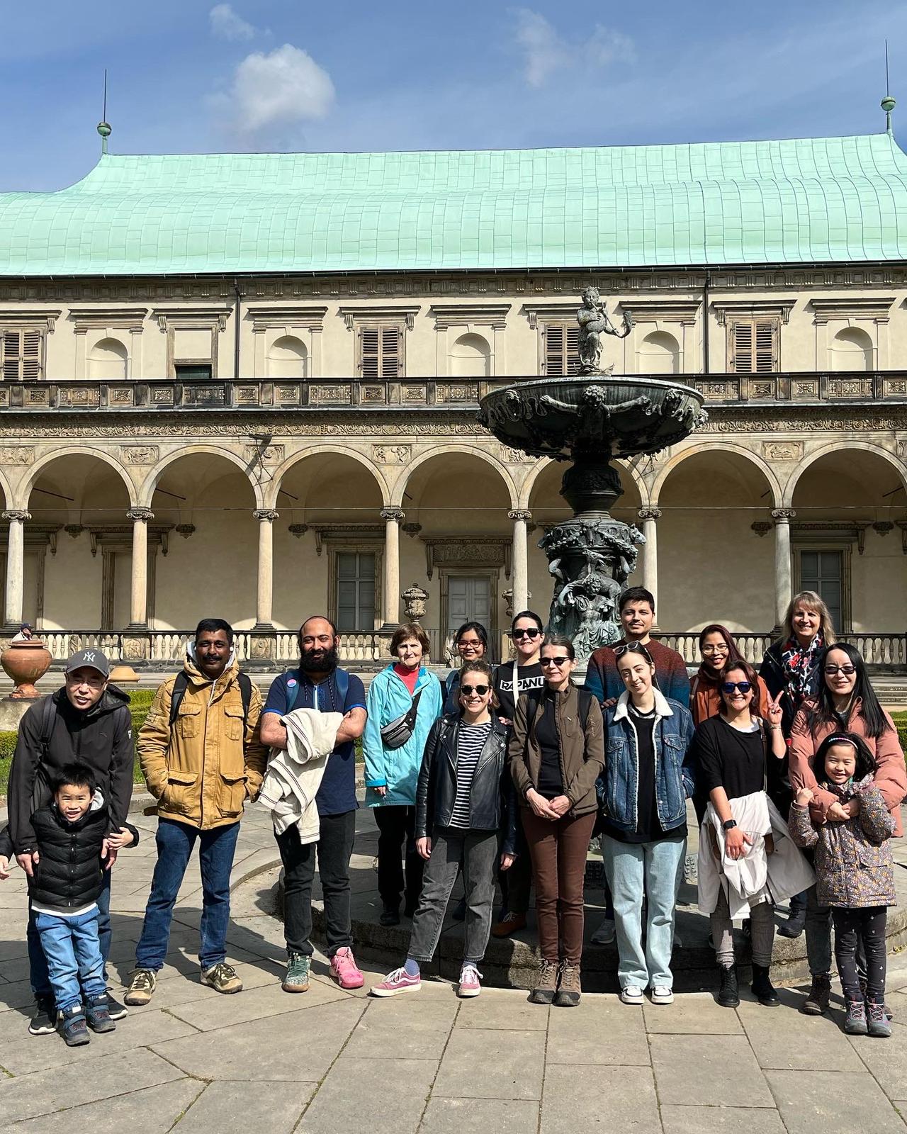 On 16th of April 2023 Welcome Centre organised a tour in Prague with the local tour guide Jiřina Posledníková. We started in the Royal Garden at the Singing Fountain at 3 pm. Our guide Ms. Posledníková started the tour with a joke that her name means “the last one” which is why she is always the last one to show up. Sadly, the joke didn’t land, because our group was joined right next instant by one of the researchers who beat her to being the last one.