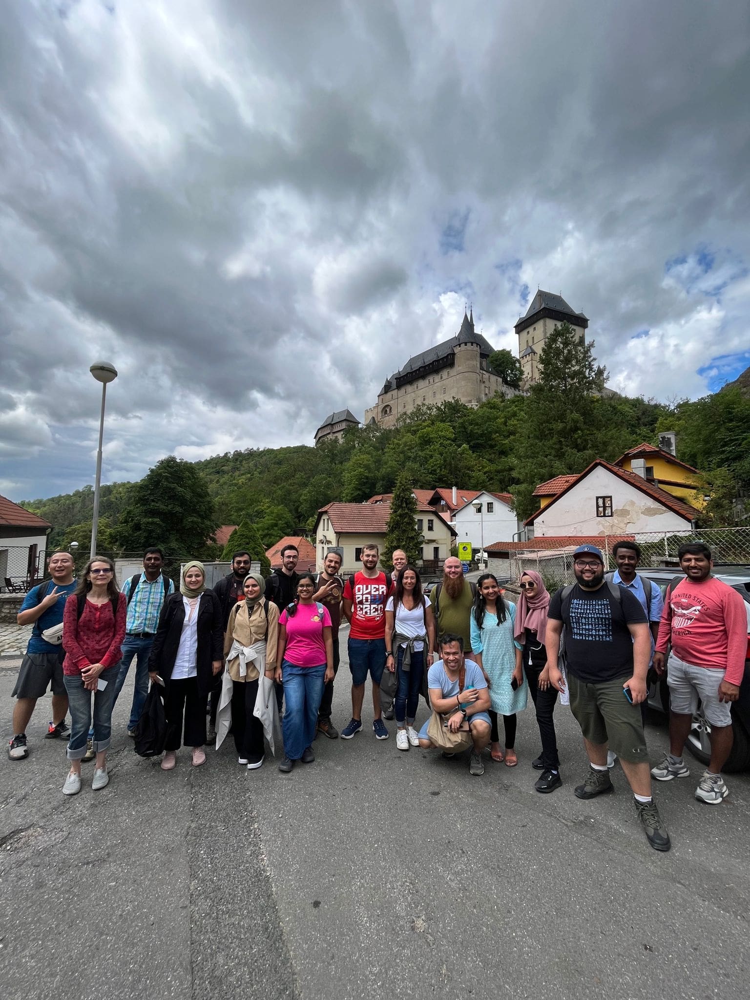 On the 29th of July, we enjoyed an amazing trip to a village called Mořinka and Karlštejn Castle. After taking a train and a bus we were finally in Mořinka which has a long and impressive history. With the assistance of Lukáš Pospíšil, the Head of the International Relations Office at CZU, we were privileged to delve into the fascinating heritage of Mořinka. One of the most magical moments of our expedition was climbing one of the hills to see the fascinating view of Mořinka. As we reached the summit, that wonderful view, where blue and green meet harmoniously, drew us in.